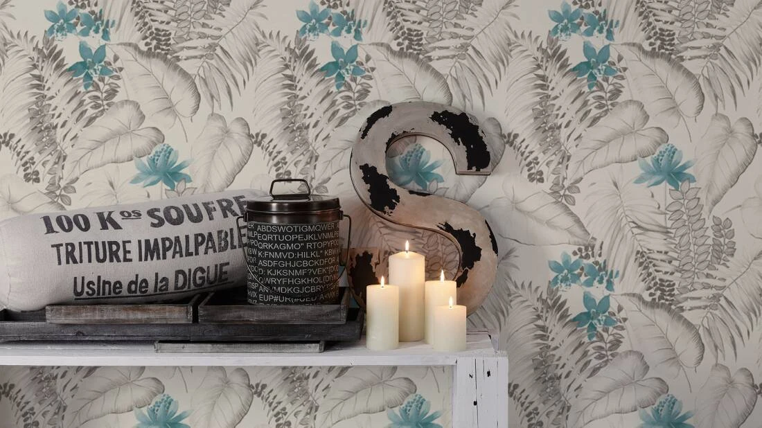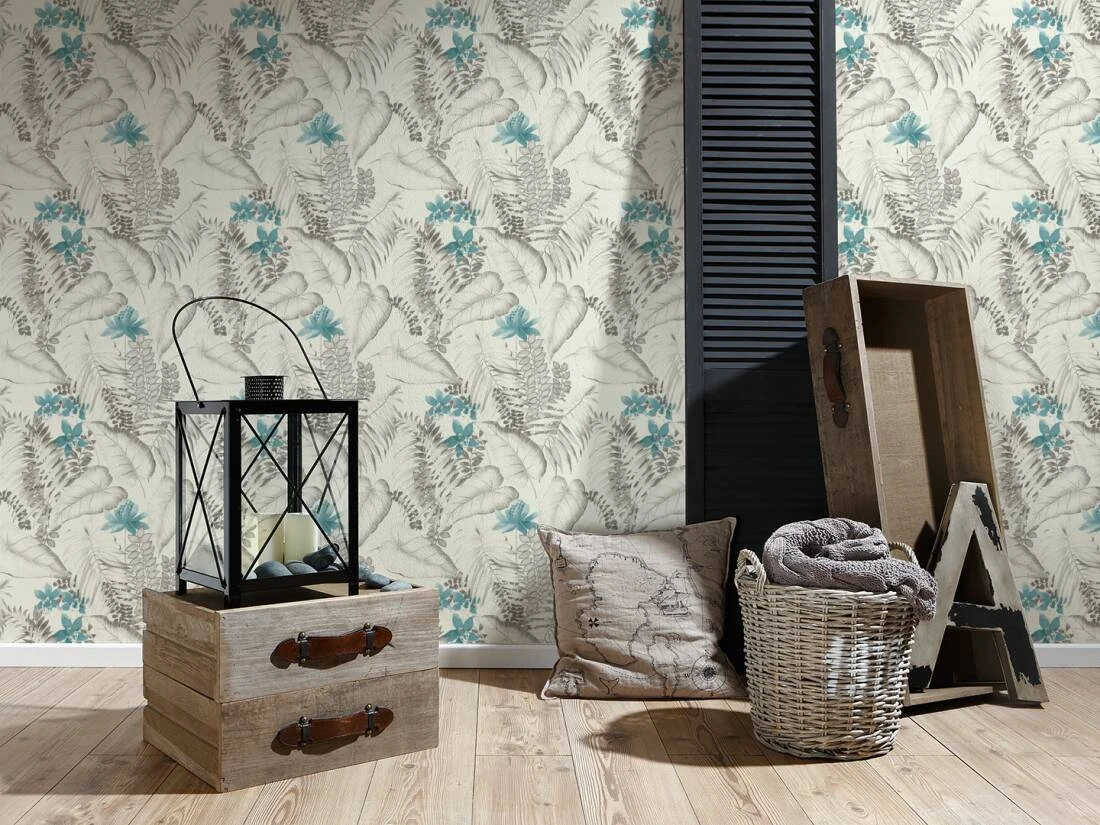 Vliestapete Exotisch Floral Blätter weiß braun blau AS Creation Exotic Life 372792 | 37279-2