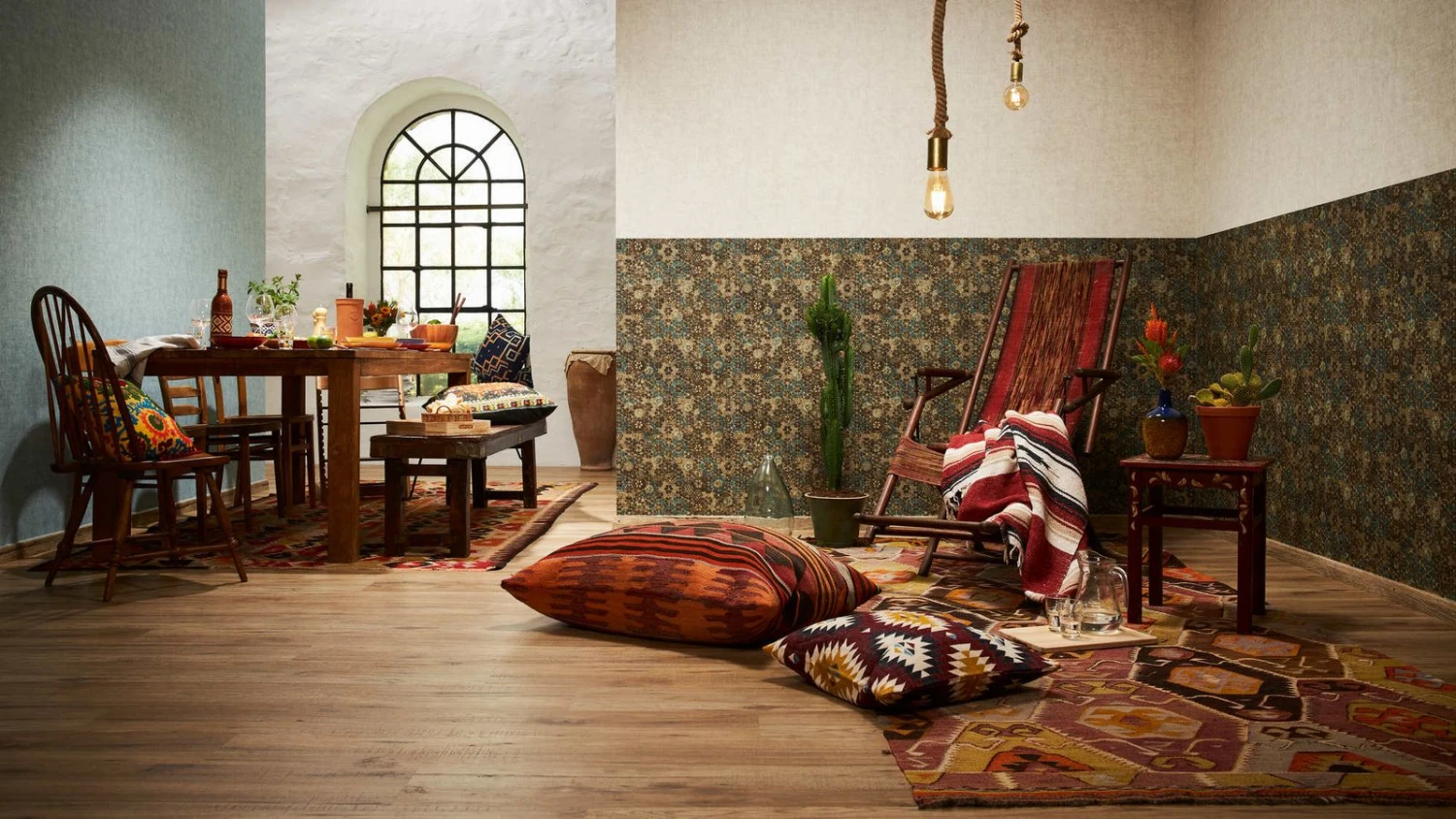 Vliestapete Vintage Fliesen türkis braun beige silber Glitzer livingwalls New Walls 37391-1 | 373911