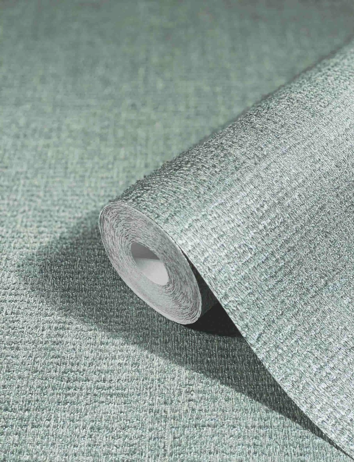 Tapete Vlies Meliert Textil Silber-Grün Metallic Natural Opulence Marburg 85740