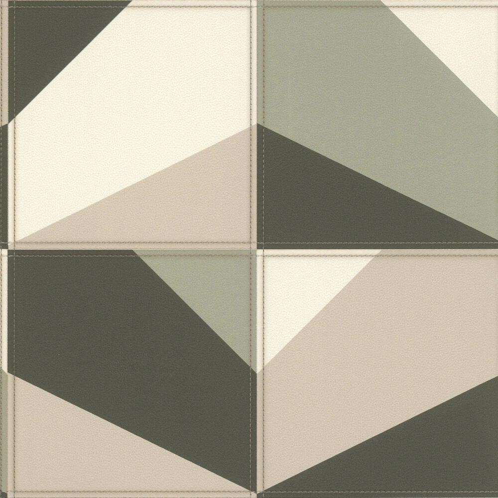 Tapete Vlies Rasch Leder-Kacheln dunkelgrün weiß beige Club 419245