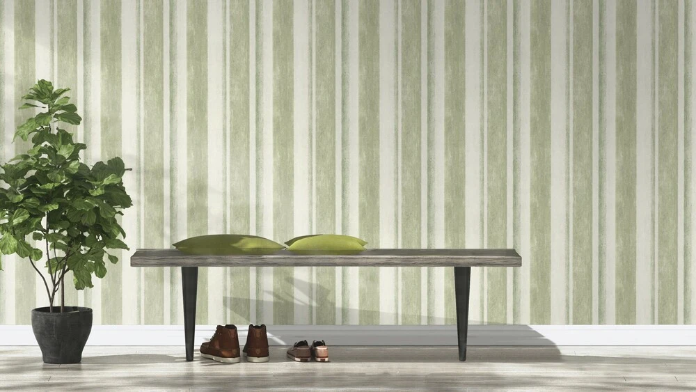 Tapete Vlies Streifen Gips grün weiß Linares 617771