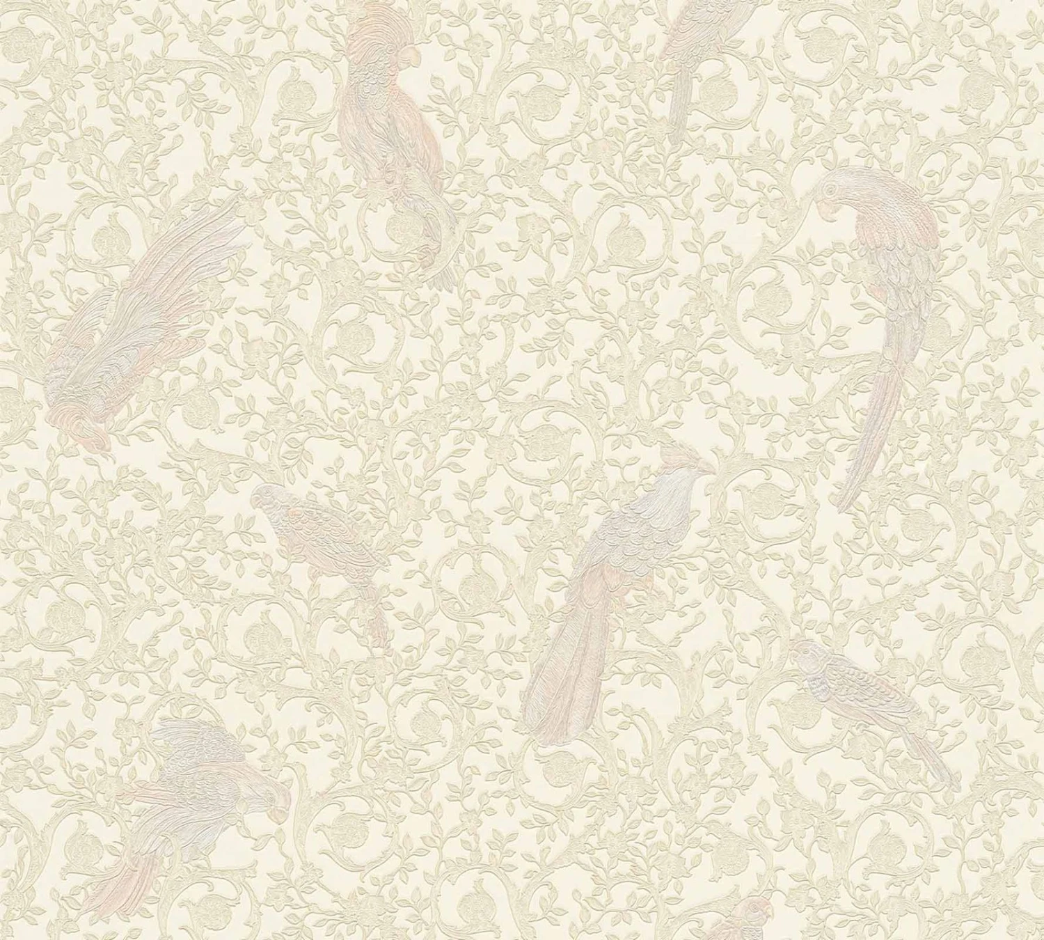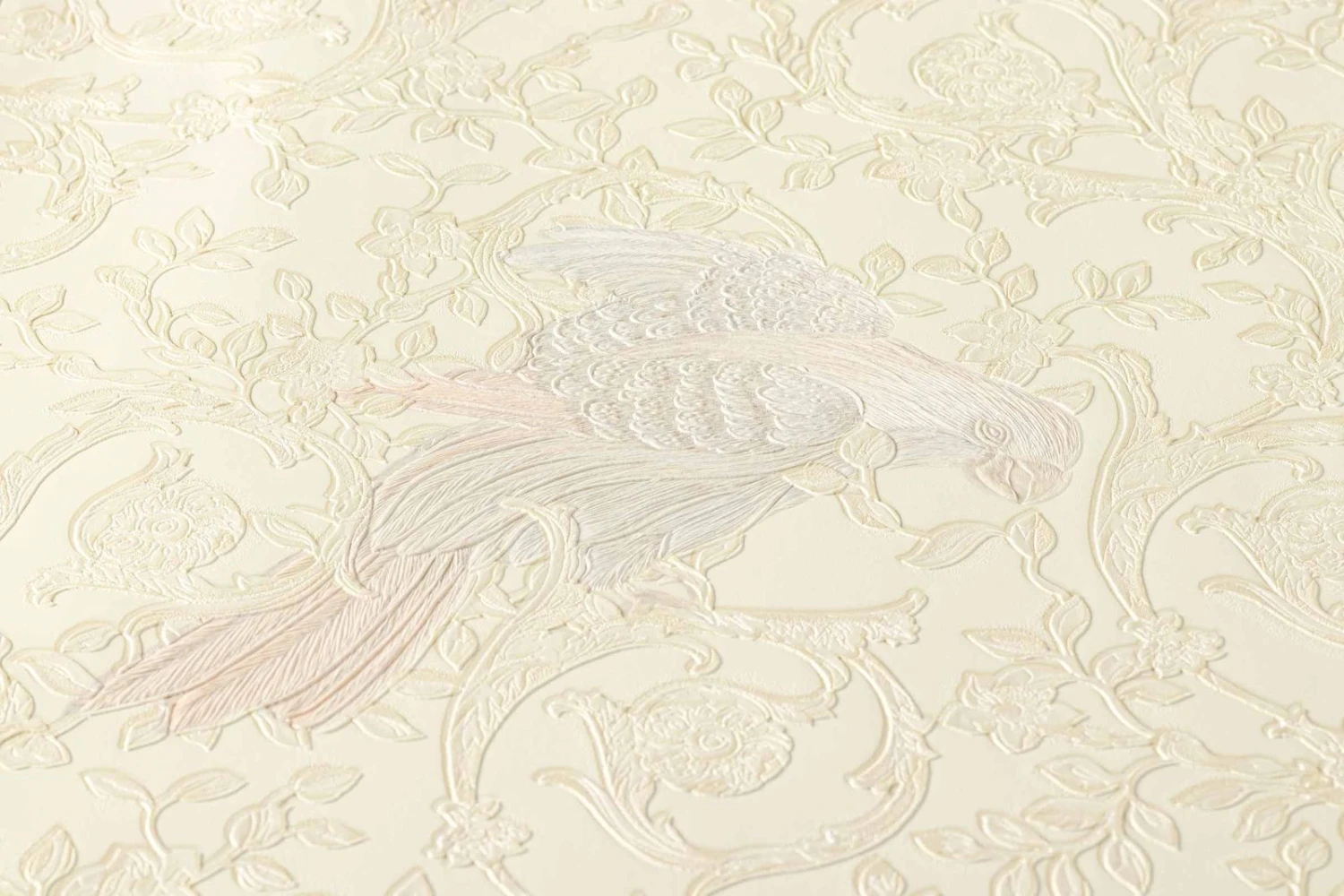Versace Home IV Vinyltapete Barock Papageien creme weiß Metallic 370535
