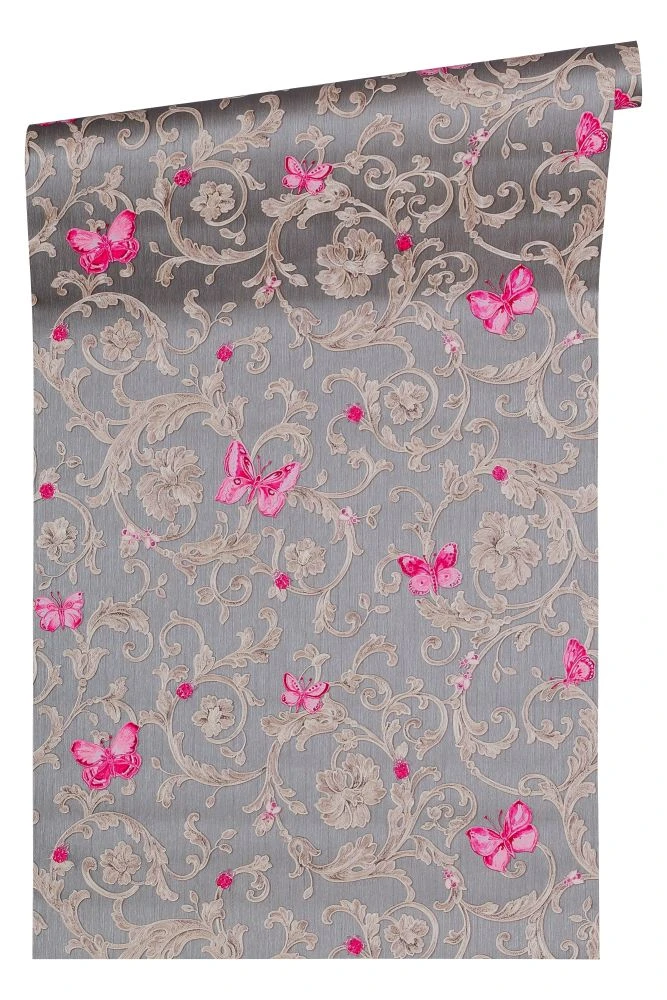 Die Einrichtungsmarke Versace Home steht für exklusives und hochwertiges Interiordesign. Dabei erfindet sich die Designermarke mit ihren glamourösen Kreationen immer wieder neu und setzt damit unangefochtene Maßstäbe im Einrichtungsbereich. Mit der dritten Auflage der erfolgreichen Versace Home Tapetenkollektion setzt die Luxusmarke erneut ausdrucksstarke Akzente im Wohnbereich. Inspiriert von Prunk und Eleganz sowie der griechischen Mythologie verzaubert Sie die Versace Vliestapete 34325-5, aus der Themenreihe Butterfly Barocco, mit einem antiken Ambiente. Dieses Ambiente wird durch das kräftige Kolorit aus grau, pink und silber-grau Glitzer- Glanz sowie der aufregenden Prägestruktur stilvoll in Szene gesetzt. Die Kombination aus Farbe und Struktur führt letztendlich dazu, dass das Rankenmotiv mit Schmetterlingen und Marienkäfern zum Hauptaugenmerk Ihrer Wandgestaltung wird.