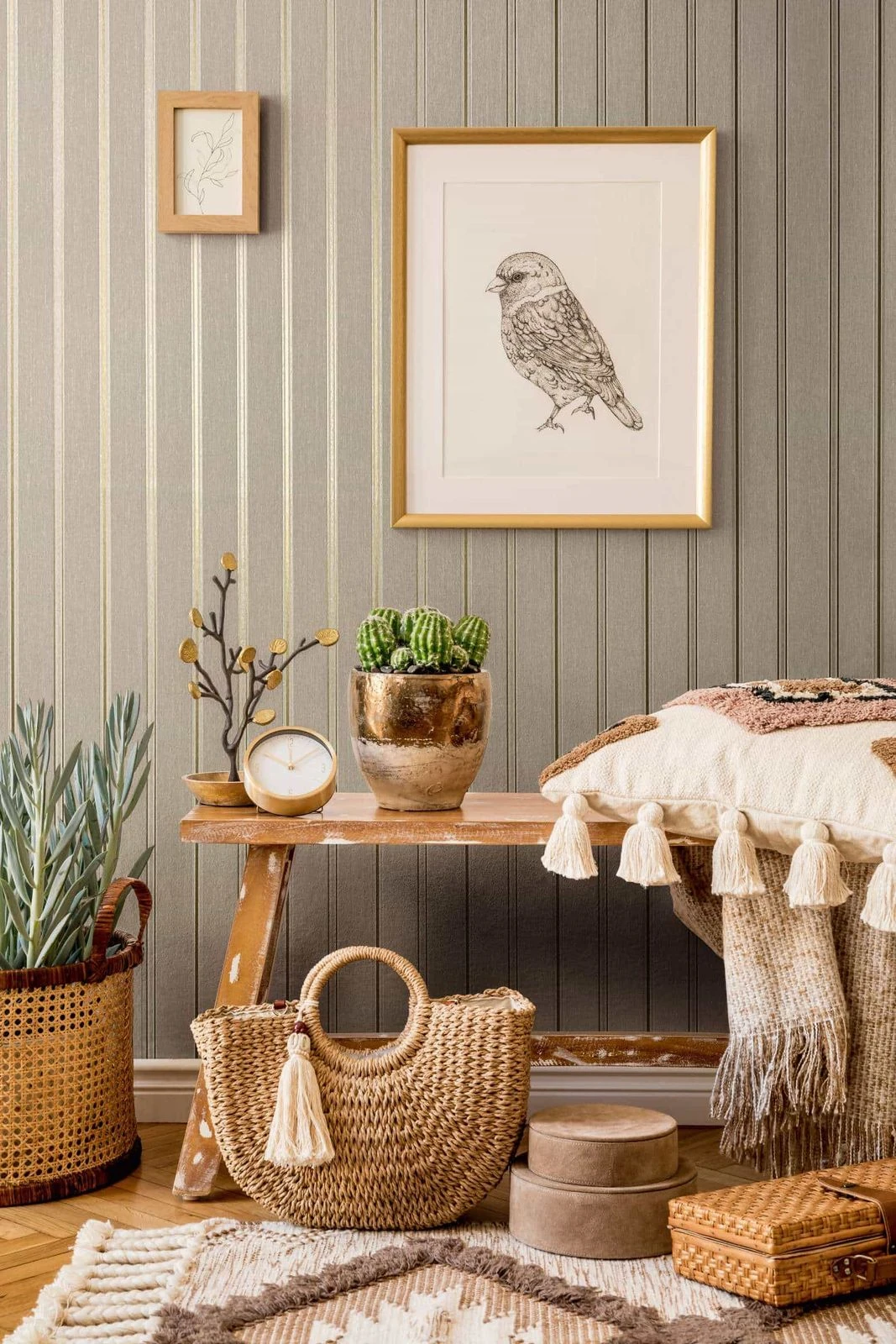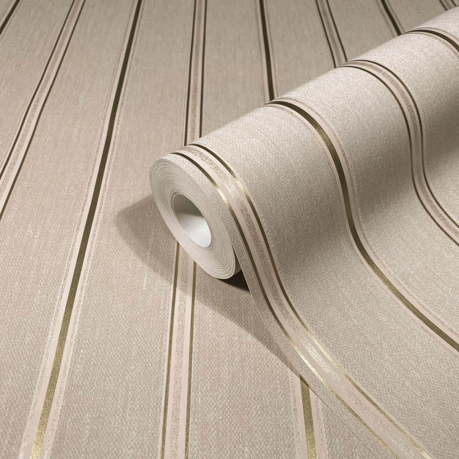 Mit dieser Vliestapete der Kollektion Villa Romana ist es ganz einfach den Flair der luxuriösen Villen Roms bei dir einziehen zu lassen. Jedem Raum kannst du so eine elegante und edle Ausstrahlung verleihen dank toller textiler Haptik und metallischen Effekten. Die Tapete 31582 zeigt ein Streifenmuster mit Metallic-Effekt und Glitzer in Gold auf einem Hintergrund in Leinenoptik in Beigetönen. Entdecke die gesamte Kollektion bei uns im Shop!