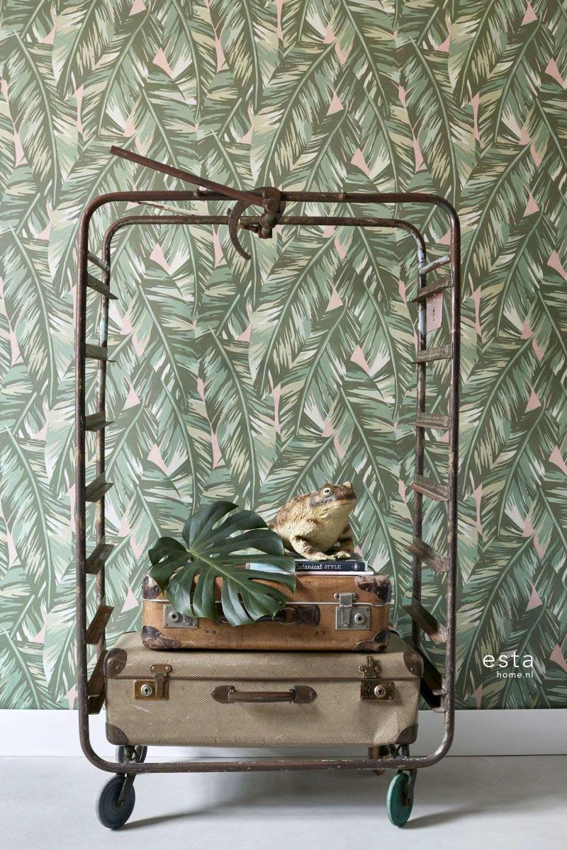Vliestapete Blätter Gezeichnet grün rosa World Wide Walls Jungle Fever 139015
