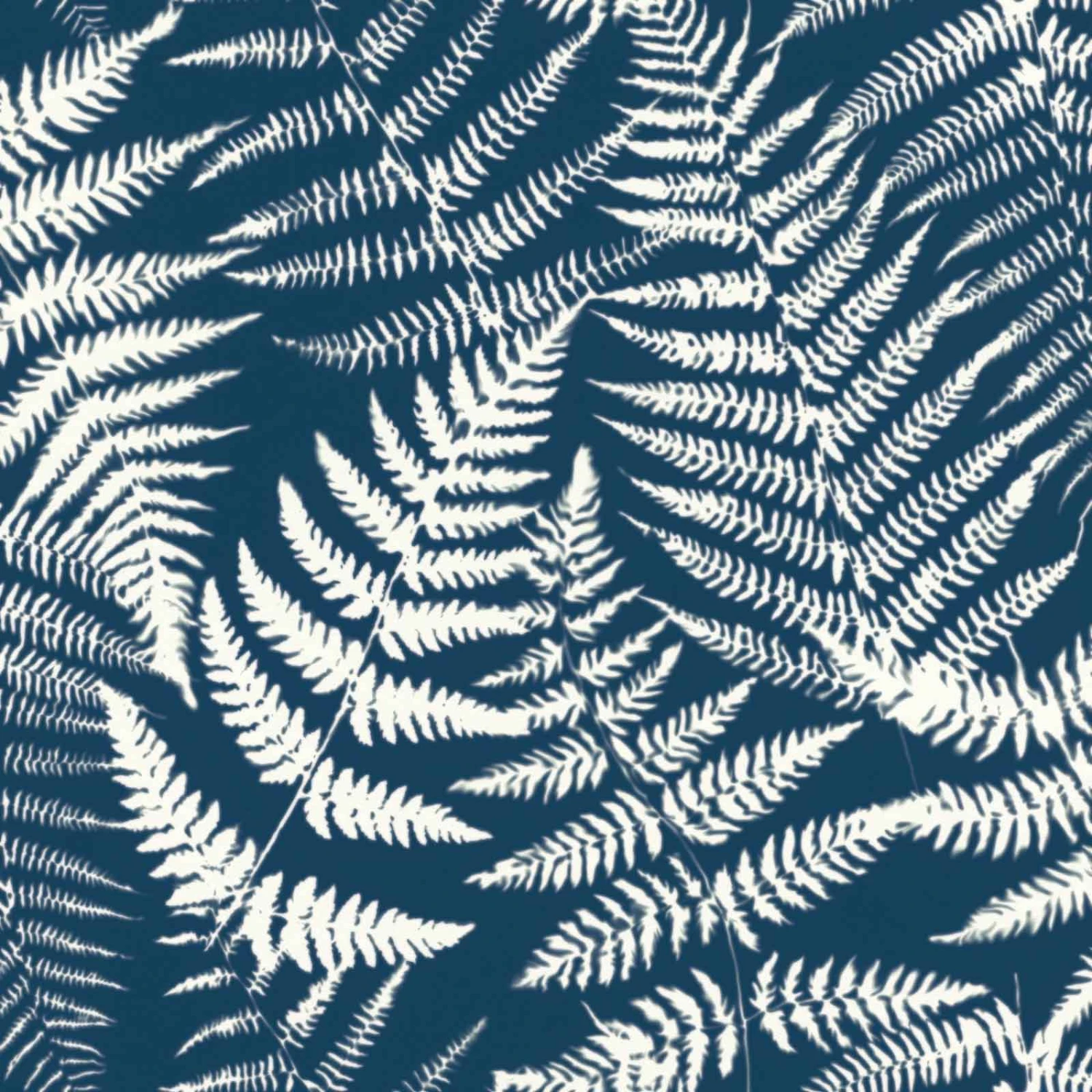 Vliestapete Blätter Negativ Farn dunkelblau weiß World Wide Walls Jungle Fever 139000